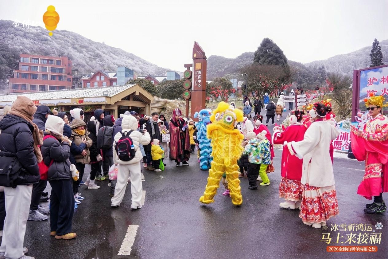 元旦假期千层金,位于重庆近郊的金佛山景区开展“冰雪祈鸿运·马上来接福”主题活动,为游客呈现一场融合国风巡游互动、非遗集市、冰雪盛宴、山海经主题灯展的新年纳福之旅,让游客在祈福氛围中喜迎新年。